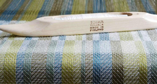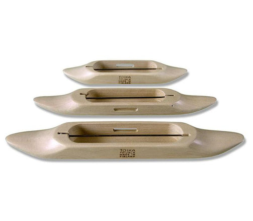 De plastic weefspoeltjes passen in de 30 en 34 cm schuitjes.