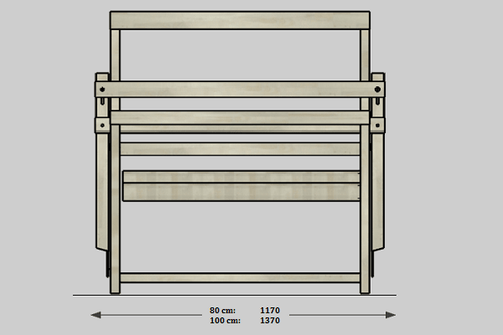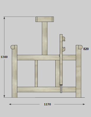 Buitenmaat van getouw is 117 of 137 cm breed, 117 cm diep en 128 cm hoog (70 of 80 kilo). Hoogte borstboom 82 cm.