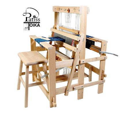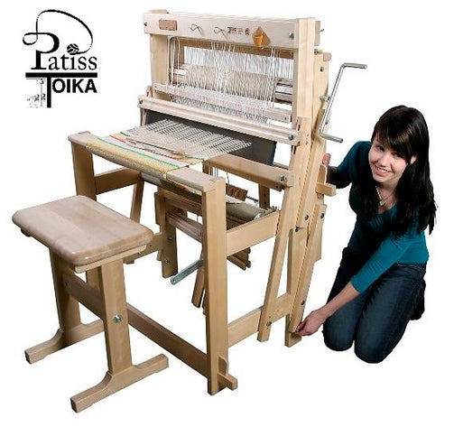 Een compact contramars weefgetouw Toika met 4 of 8 schachten en pedalen.